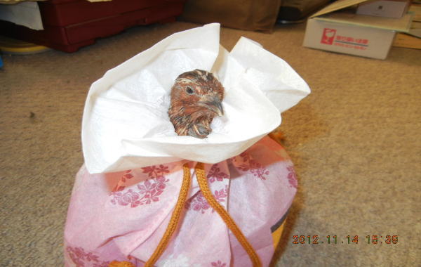 御吉兆、所縁の鶉です。名前は鶉のヒヨです。古来寄り鶉は瑞兆とされ